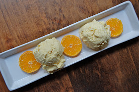I treated myself to a little dessert today.  I had been itching to try the Clementine Sorbet.  I am lucky enough to have a friend with an ice cream machine that she let me borrow.  I blended all the ingredients, and poured them into the ice cream maker for about 35 minutes.  My understanding is you can also just pour the ingredients in a container and freeze according to the CSK cookbook.  Then pulse in a food processor to make the sorbet.